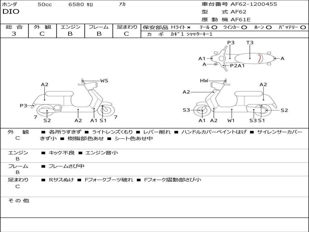 | Номер рамы / VIN | AF62-1200455 |