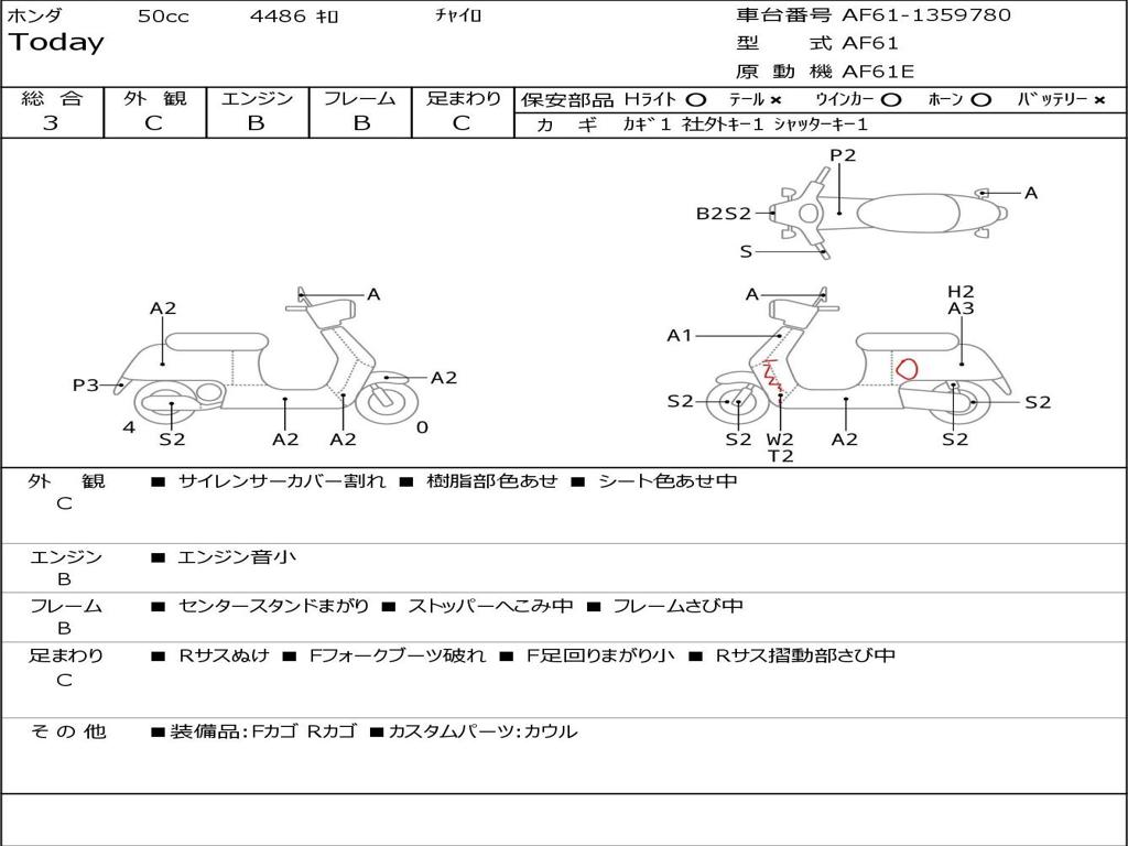 | Номер рамы / VIN | AF61-1359780 |