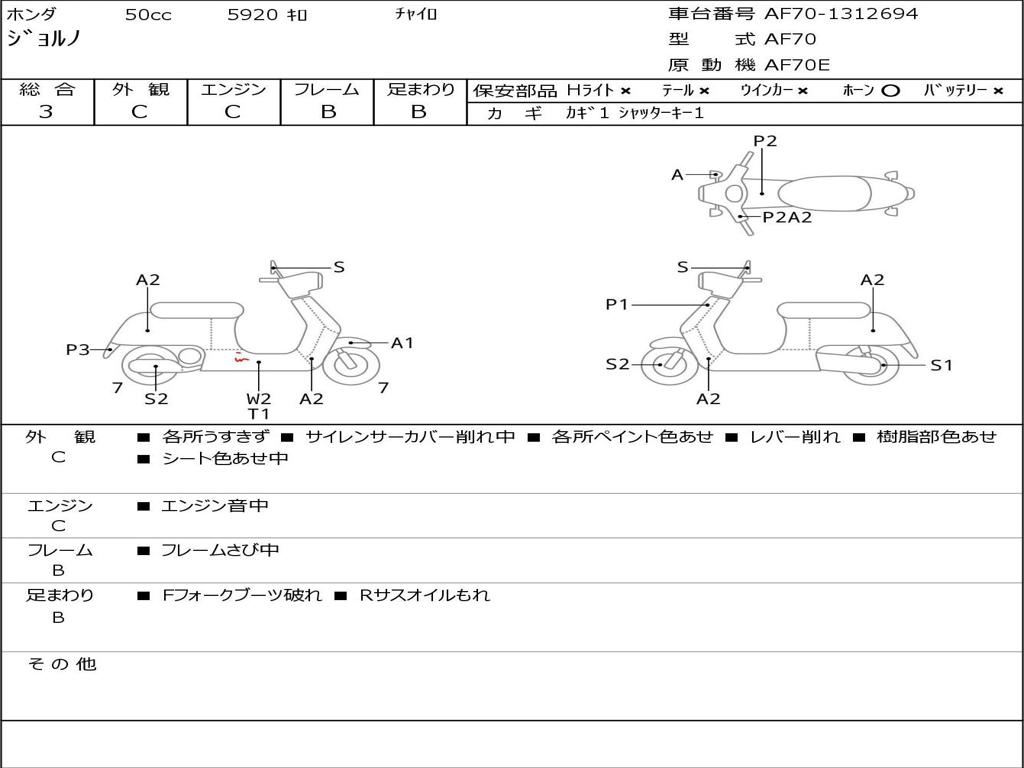| Номер рамы / VIN | AF70-1312694 |