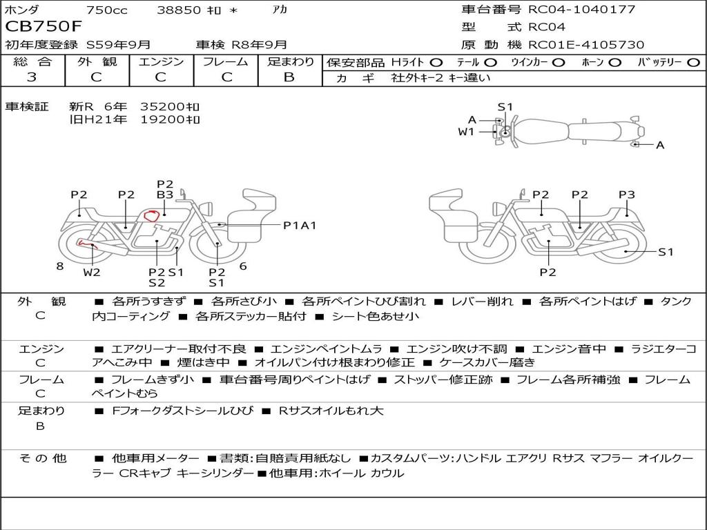 | Номер рамы / VIN | RC04-1040177 |