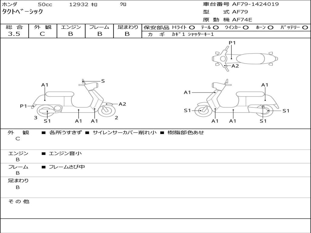 | Номер рамы / VIN | AF79-1424019 |
