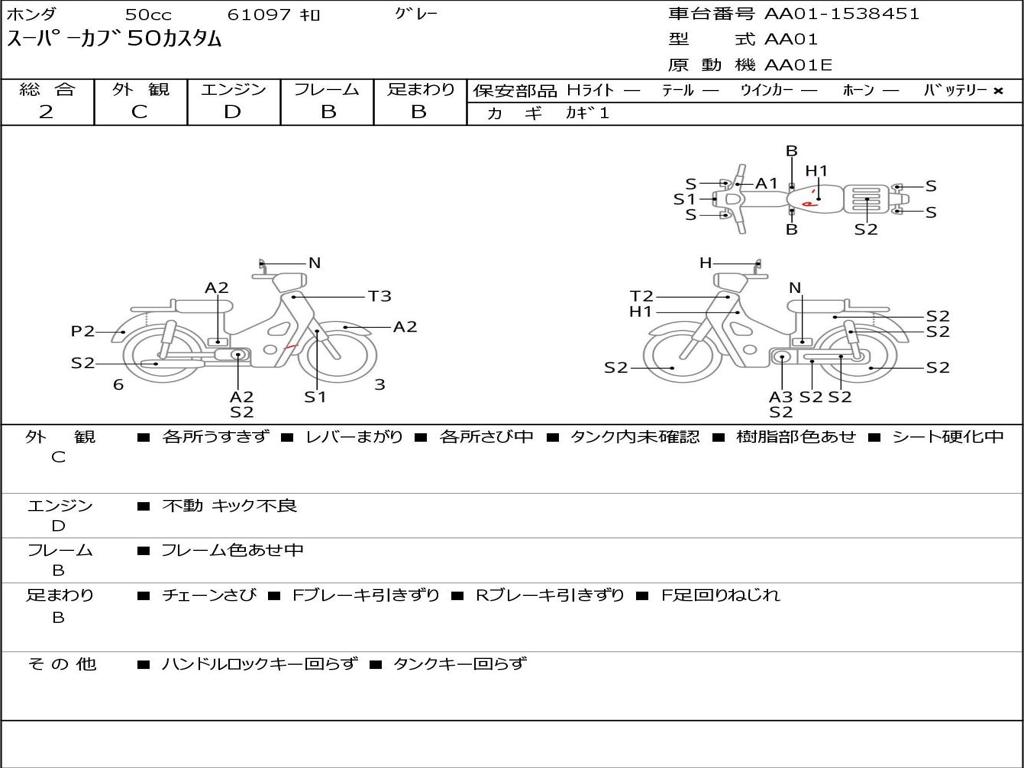 | Номер рамы / VIN | AA01-1538451 |