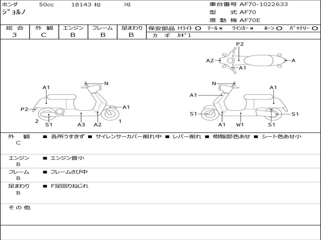 | Номер рамы / VIN | AF70-1022633 |