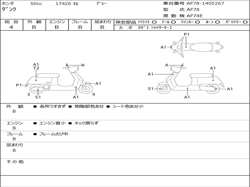 | Номер рамы / VIN | AF78-1405267 |
