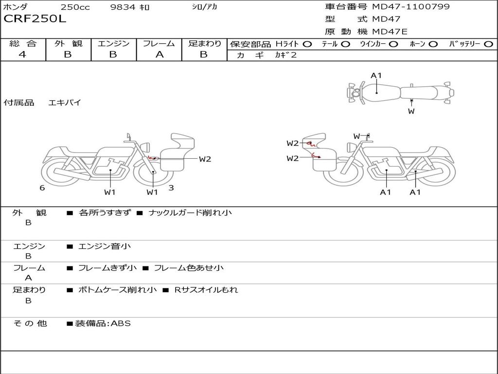 | Номер рамы / VIN | MD47-1100799 |