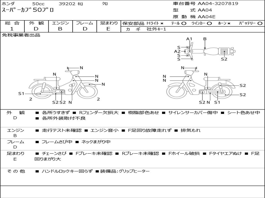 | Номер рамы / VIN | AA04-3207819 |