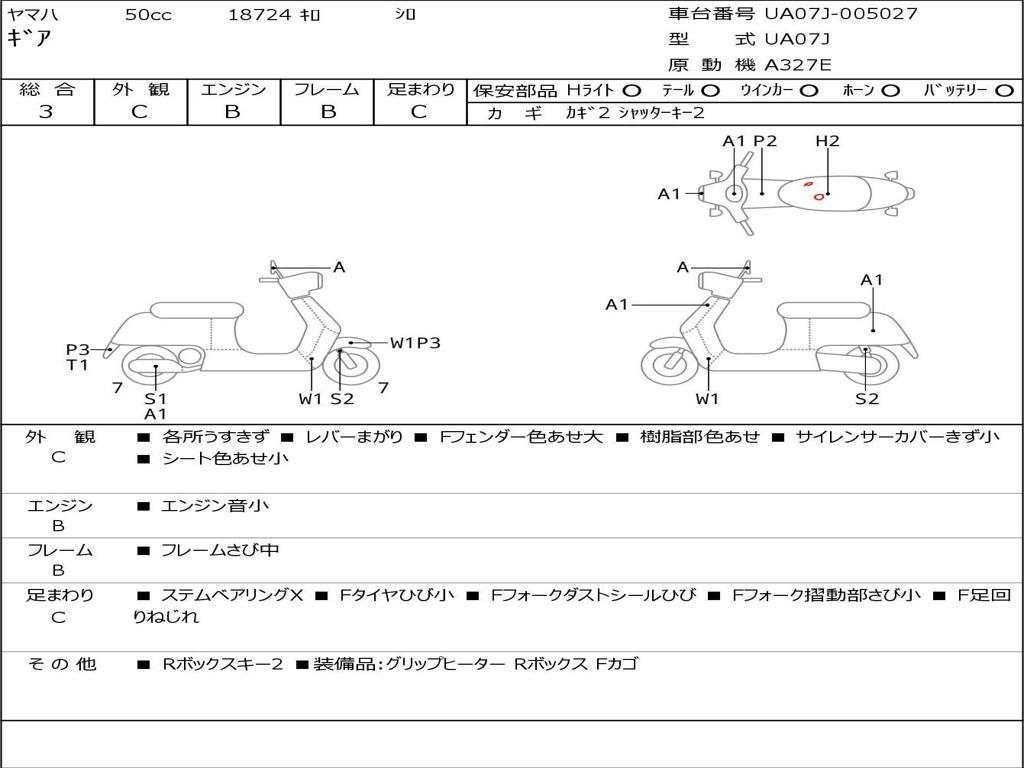 | Номер рамы / VIN | UA07J-005027 |
