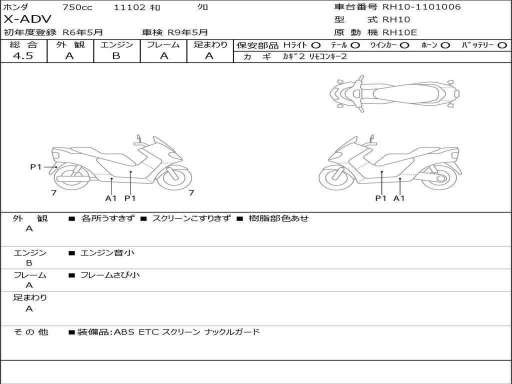 | Номер рамы / VIN | RH10-1101006 |