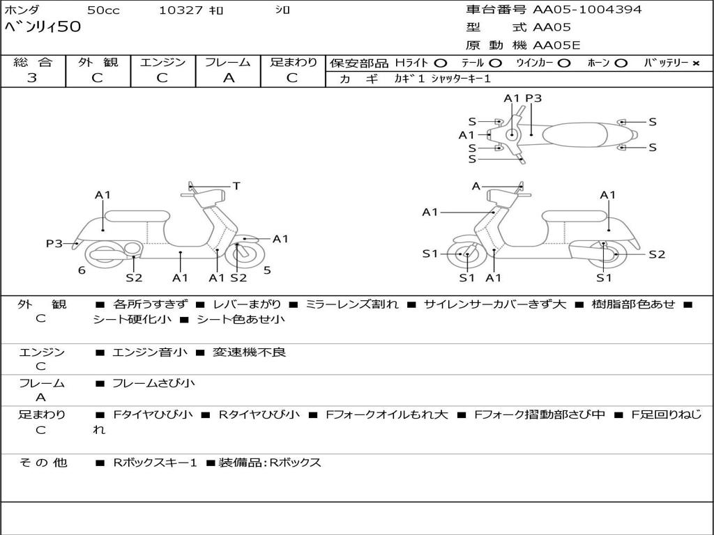 | Номер рамы / VIN | AA05-1004394 |