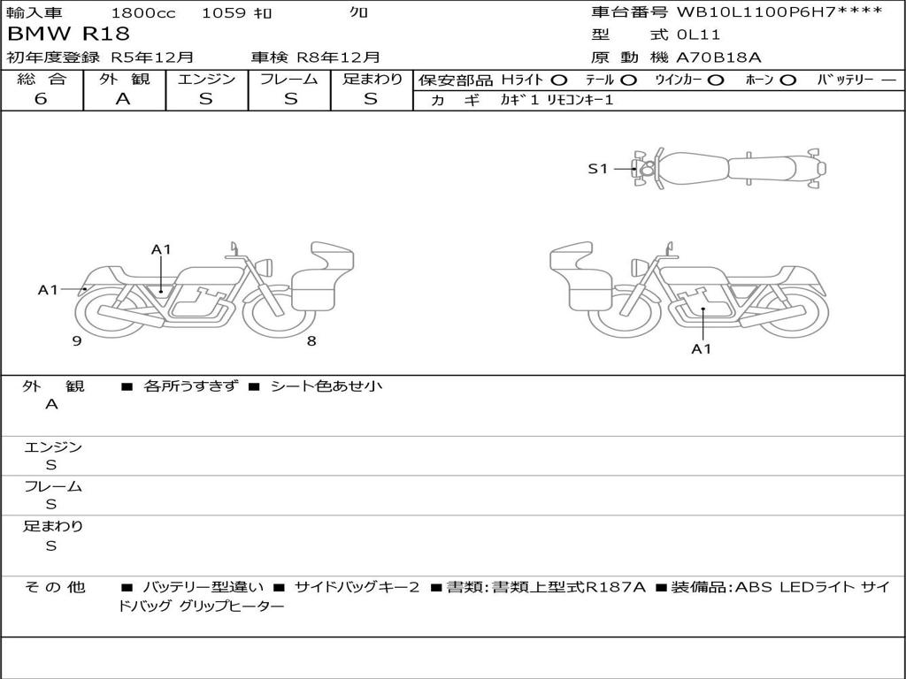 | Номер рамы / VIN | WB10L1100P6H73070 |