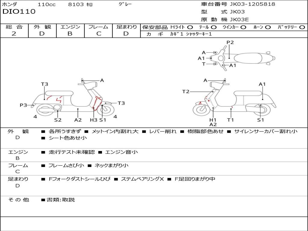 | Номер рамы / VIN | JK03-1205818 |