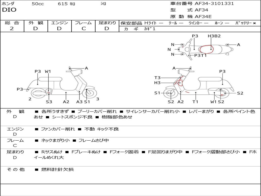 | Номер рамы / VIN | AF34-3101331 |