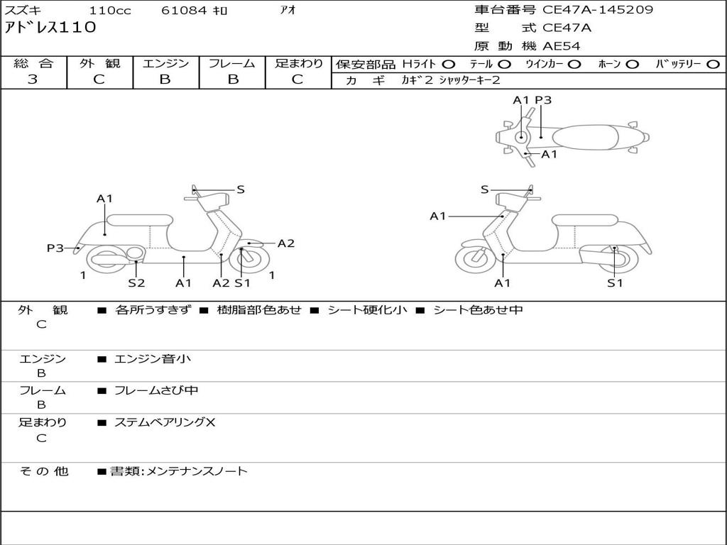 | Номер рамы / VIN | CE47A-145209 |