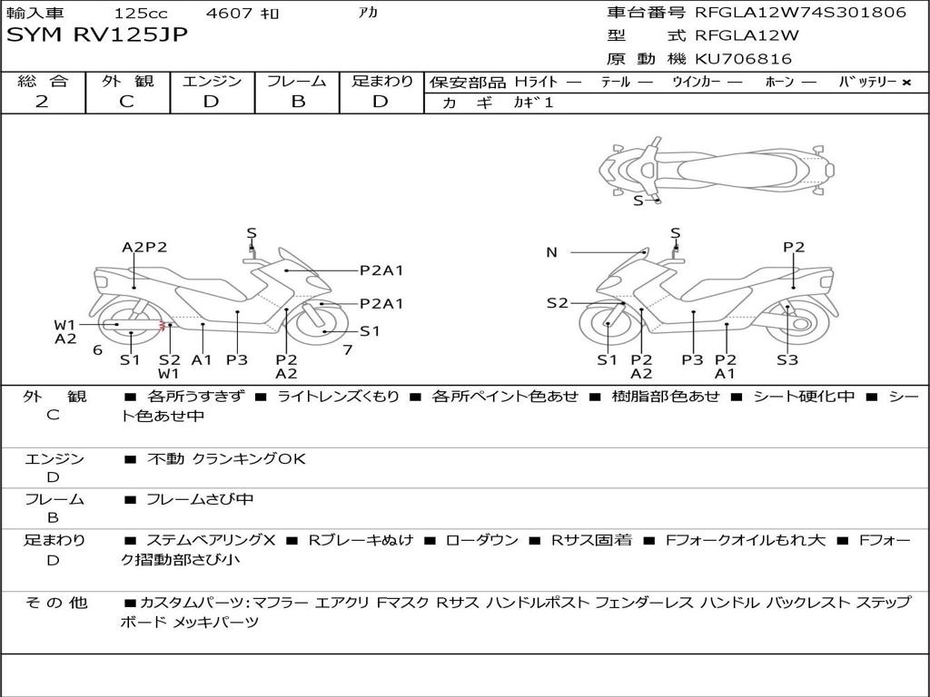 | Номер рамы / VIN | RFGLA12W74S301806 |