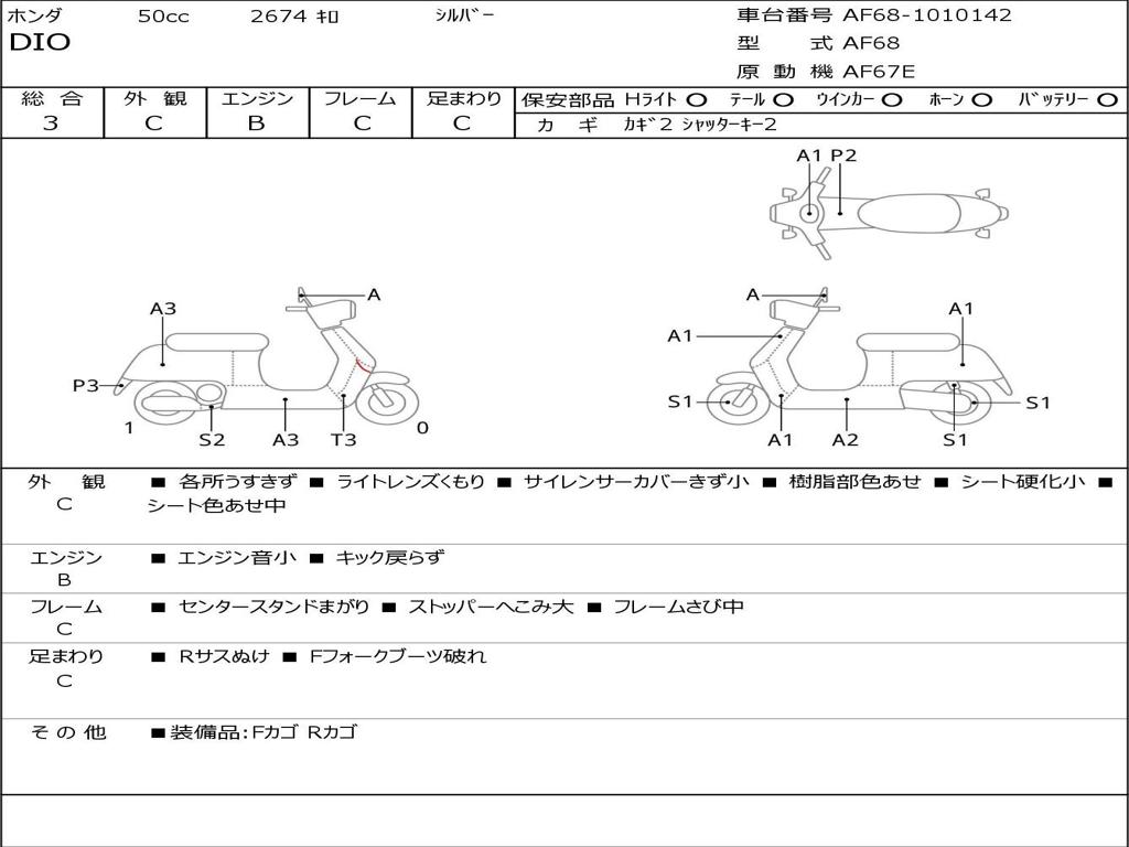 | Номер рамы / VIN | AF68-1010142 |