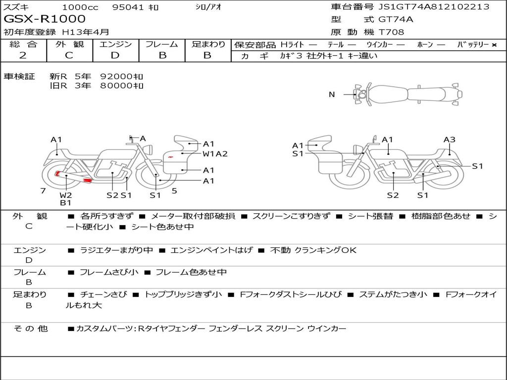 | Номер рамы / VIN | JS1GT74A812102213 |