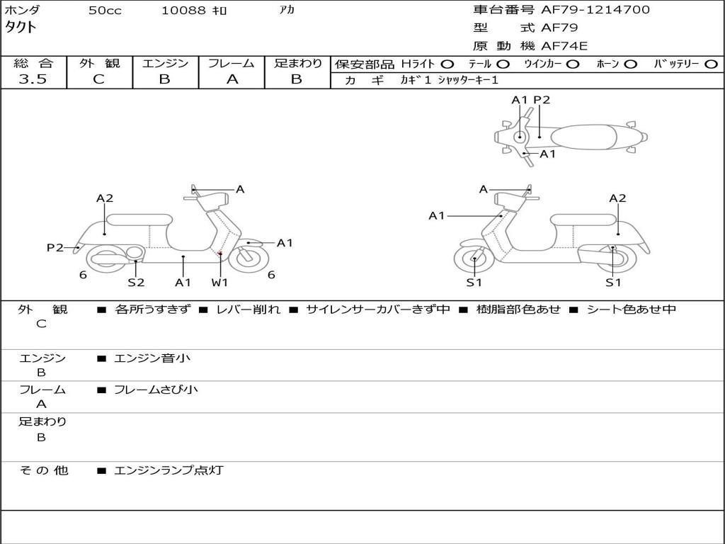 | Номер рамы / VIN | AF79-1214700 |