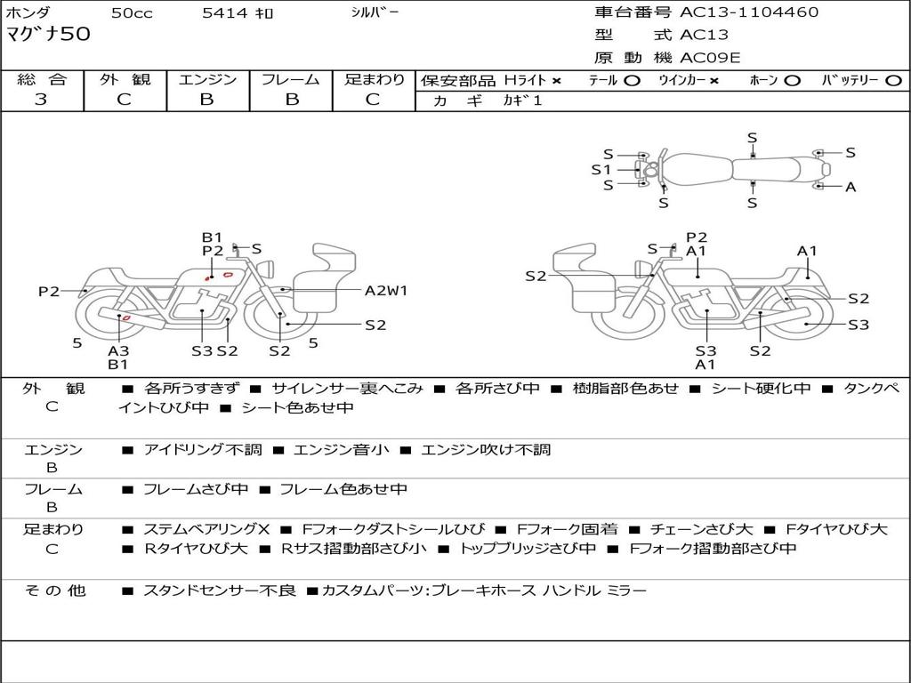 | Номер рамы / VIN | AC13-1104460 |