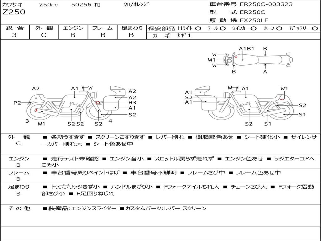 | Номер рамы / VIN | ER250C-003323 |