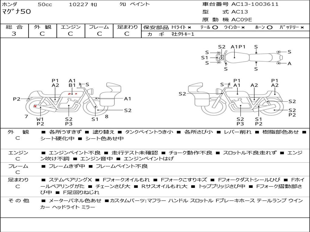 | Номер рамы / VIN | AC13-1003611 |