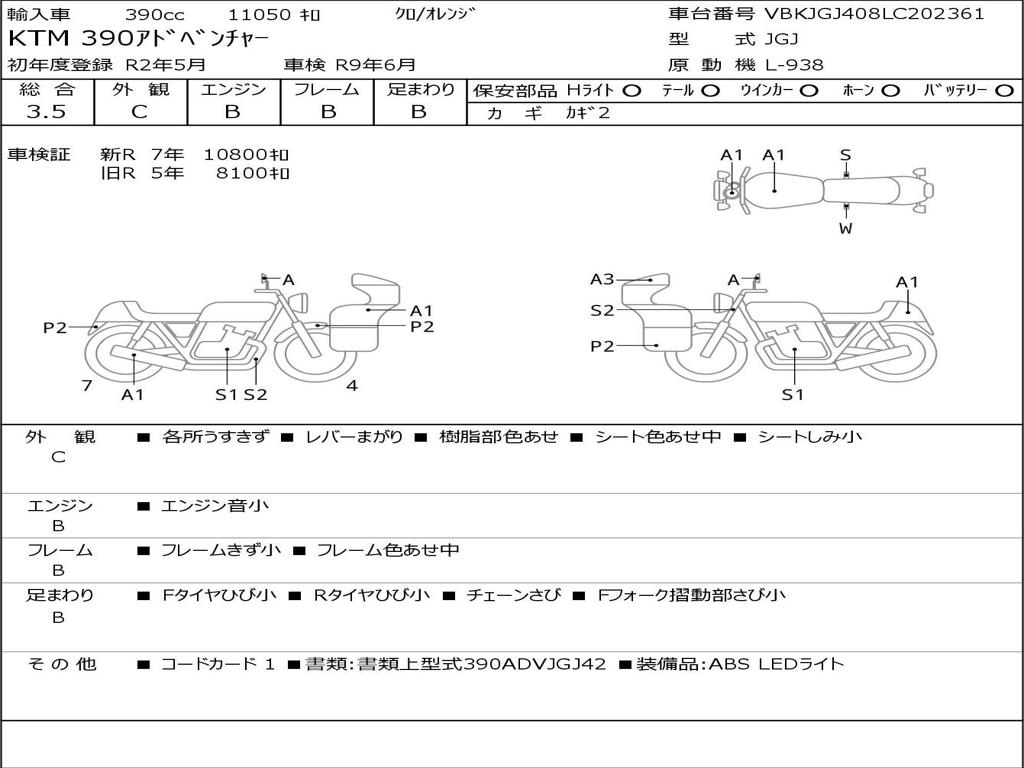 | Номер рамы / VIN | VBKJGJ408LC202361 |