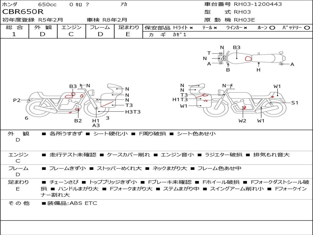 | Номер рамы / VIN | RH03-1200443 |