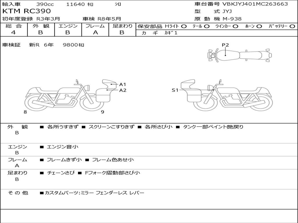 | Номер рамы / VIN | VBKJYJ401MC263663 |