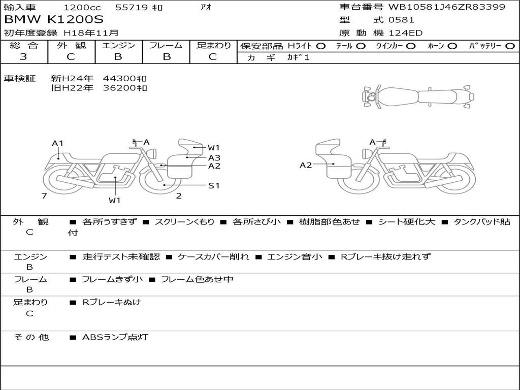 | Номер рамы / VIN | WB10581J46ZR83399 |