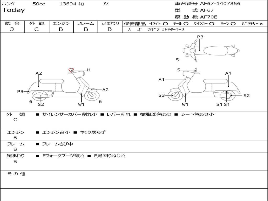 | Номер рамы / VIN | AF67-1407856 |