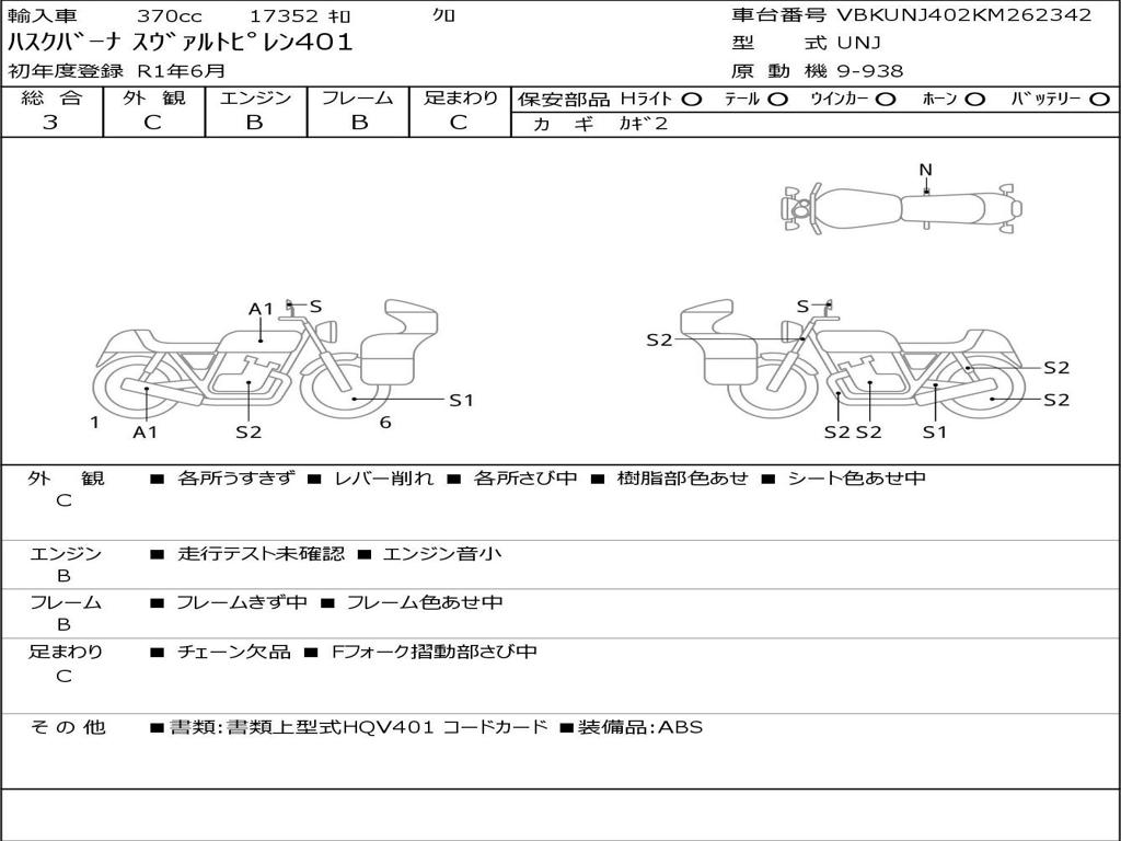 | Номер рамы / VIN | VBKUNJ402KM262342 |
