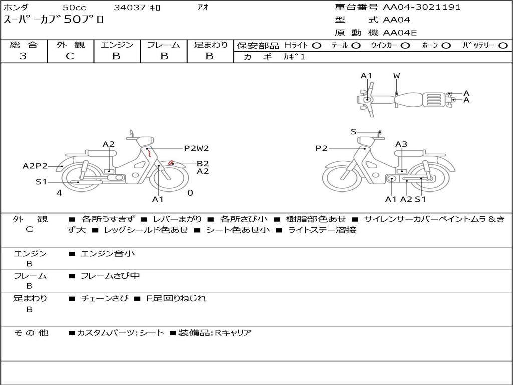 | Номер рамы / VIN | AA04-3021191 |