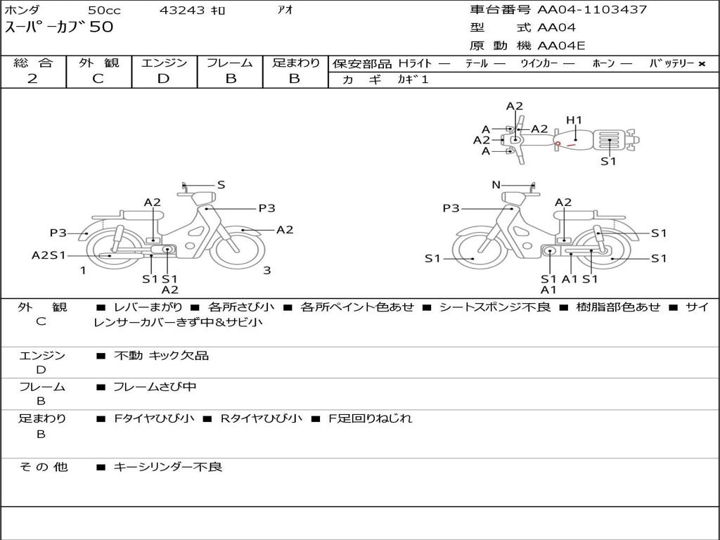 | Номер рамы / VIN | AA04-1103437 |