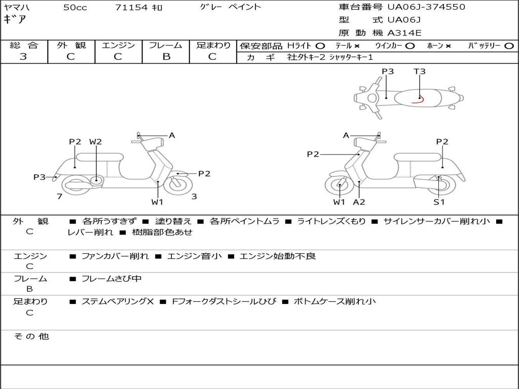 | Номер рамы / VIN | UA06J-374550 |