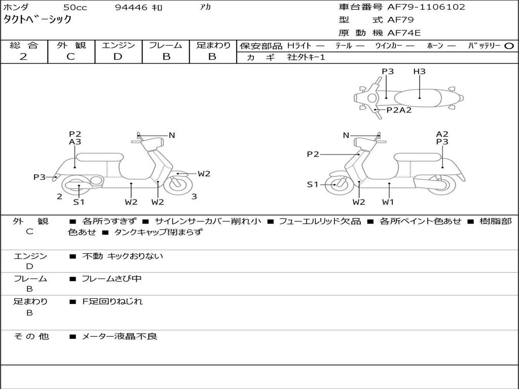 | Номер рамы / VIN | AF79-1106102 |