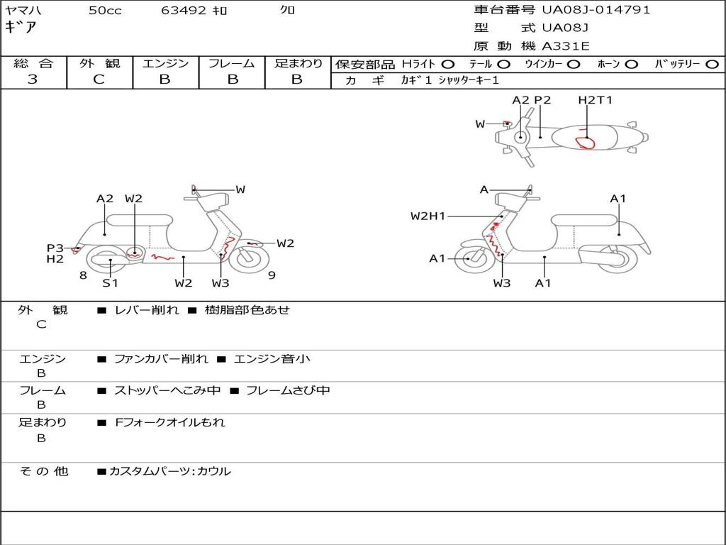| Номер рамы / VIN | UA08J-014791 |