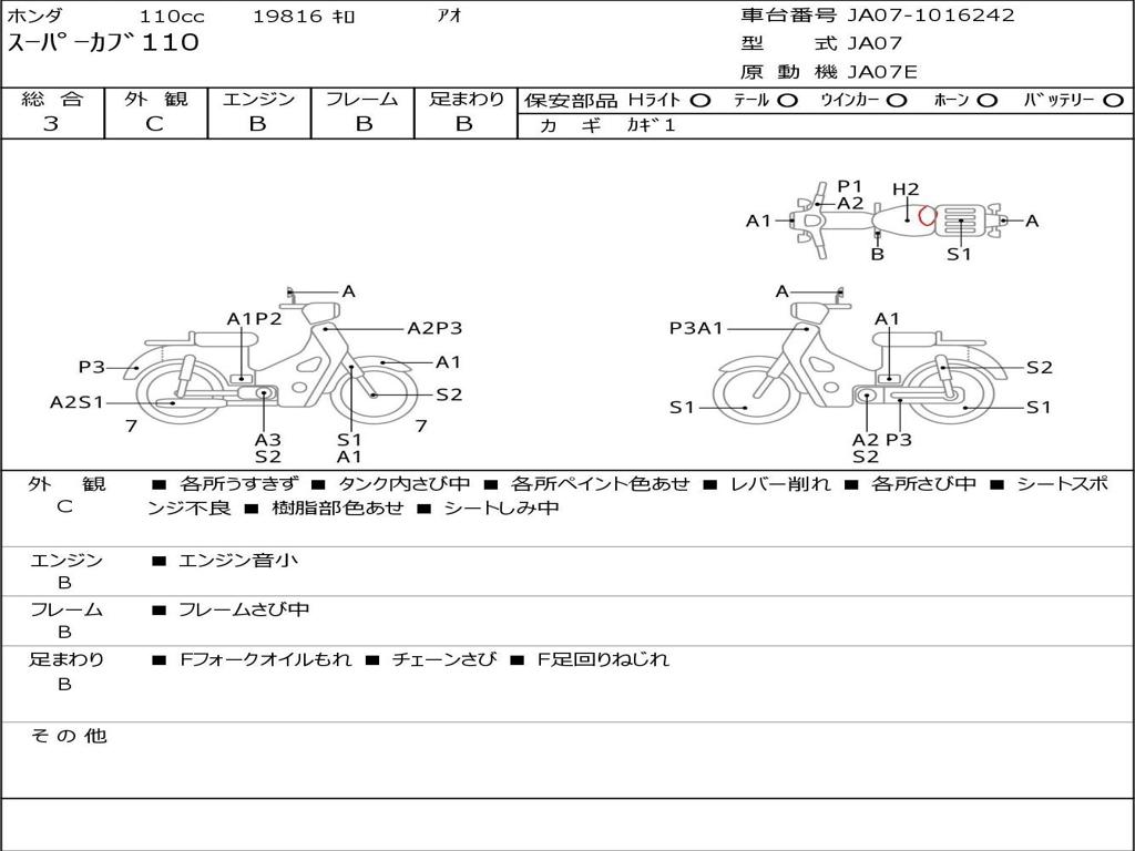 | Номер рамы / VIN | JA07-1016242 |
