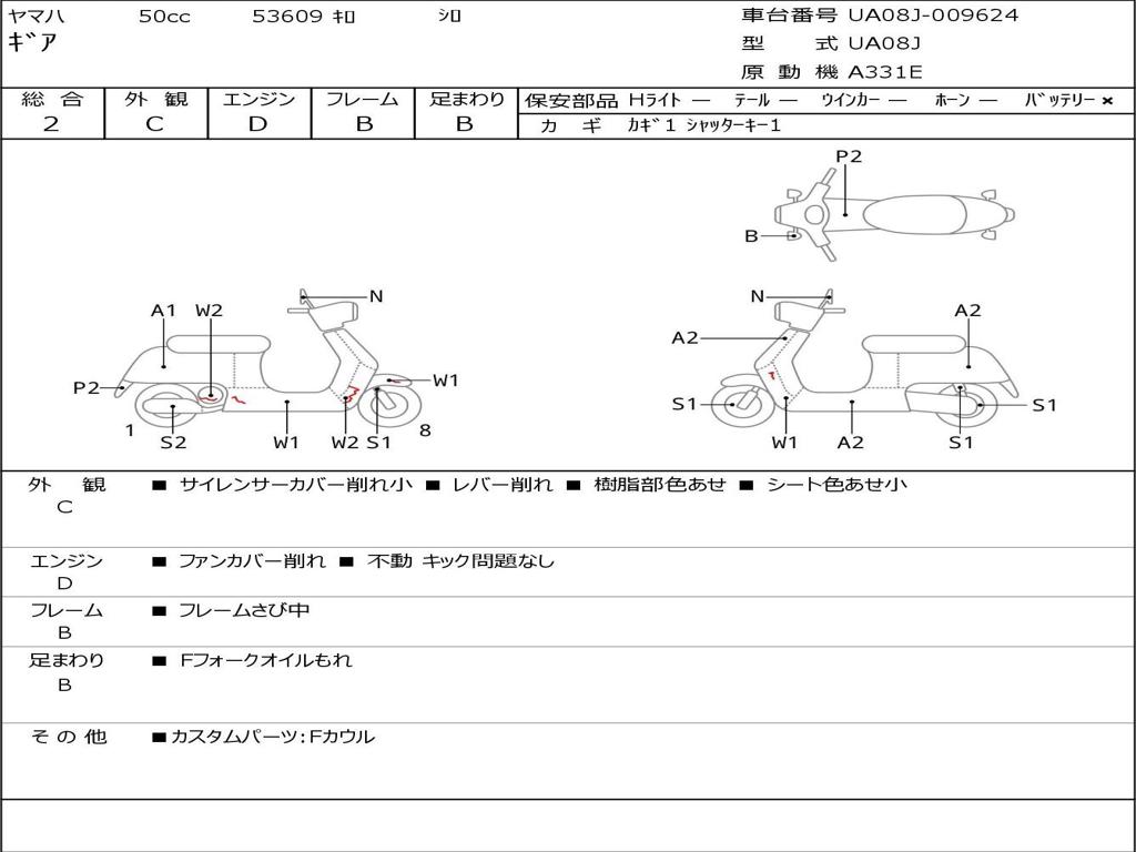 | Номер рамы / VIN | UA08J-009624 |