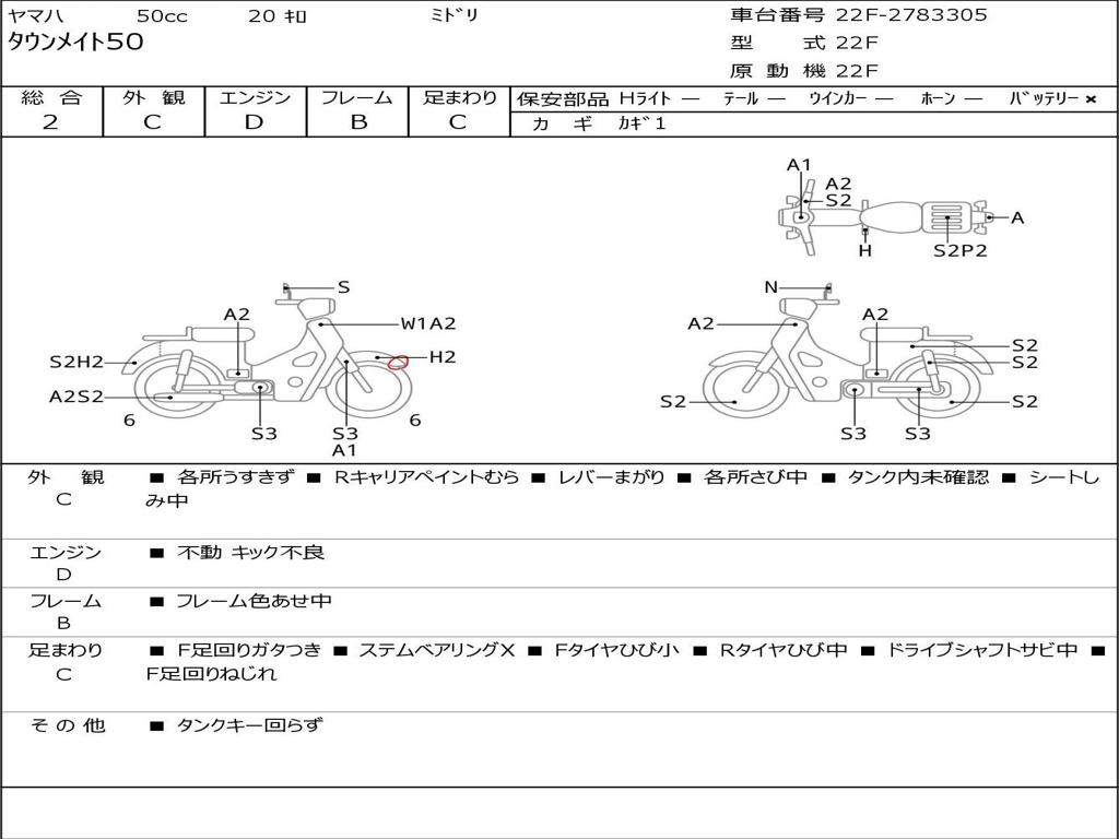 | Номер рамы / VIN | 22F-2783305 |