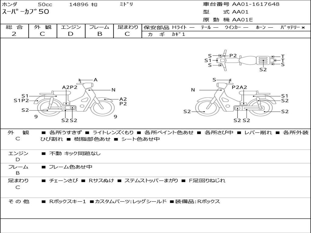 | Номер рамы / VIN | AA01-1617648 |