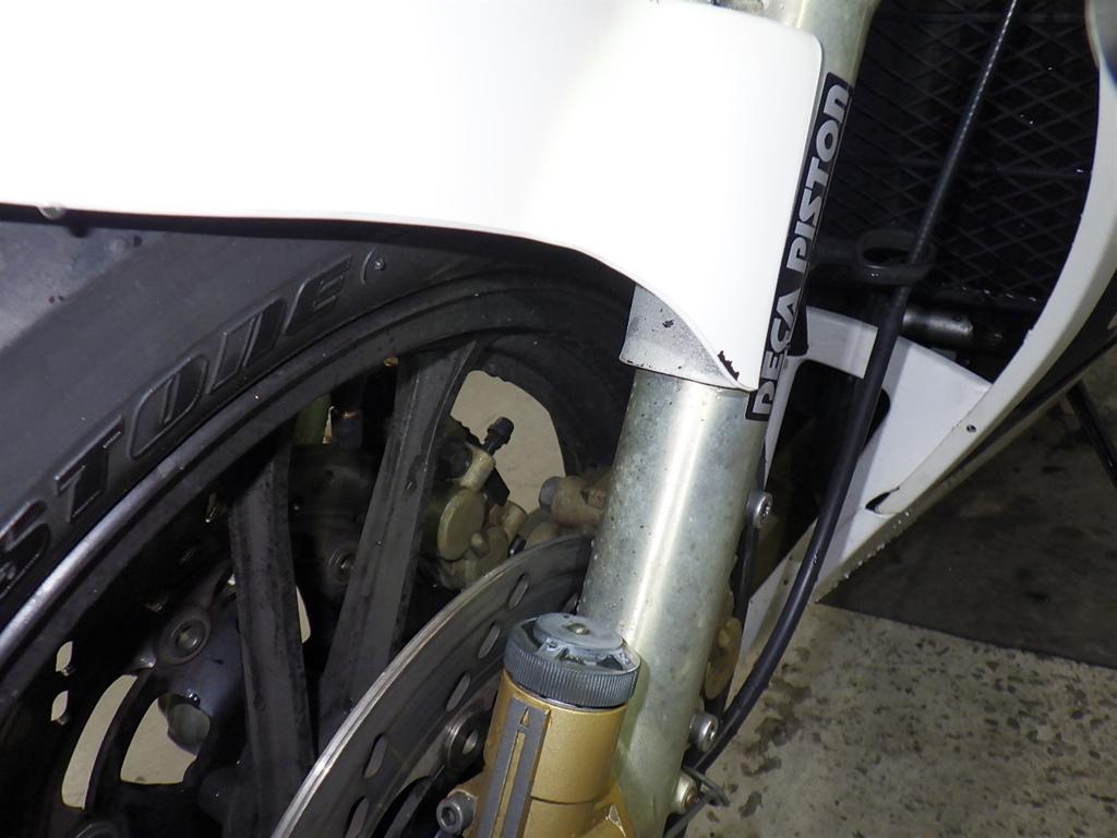 | внешняя часть вилки | царапины, следы коррозии <много>, потек масла, выцветание краски |