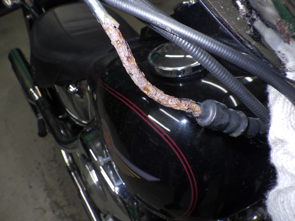 | внешняя часть вилки | следы коррозии <много>, перекрашено, неисправность |