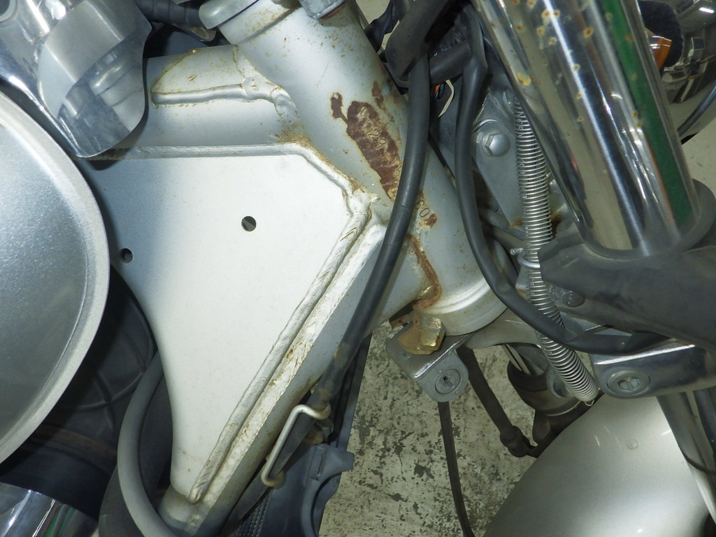 | внешняя часть вилки | царапины, следы коррозии <много>, потек масла, неисправен сальник |