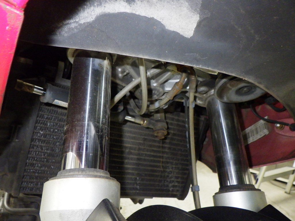 | внешняя часть вилки | следы коррозии <много>, неисправен сальник, потек масла <немного> |