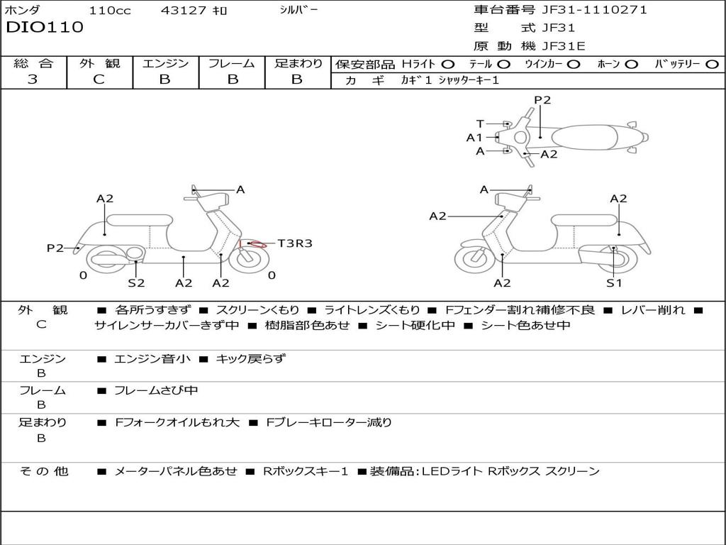 | Номер рамы / VIN | JF31-1110271 |