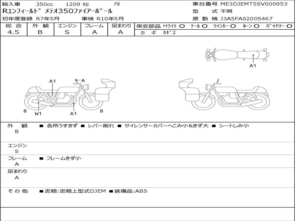 | Номер рамы / VIN | ME3DJEMT5SV000953 |