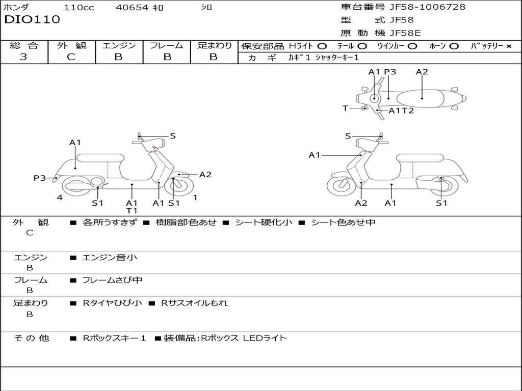 | Номер рамы / VIN | JF58-1006728 |