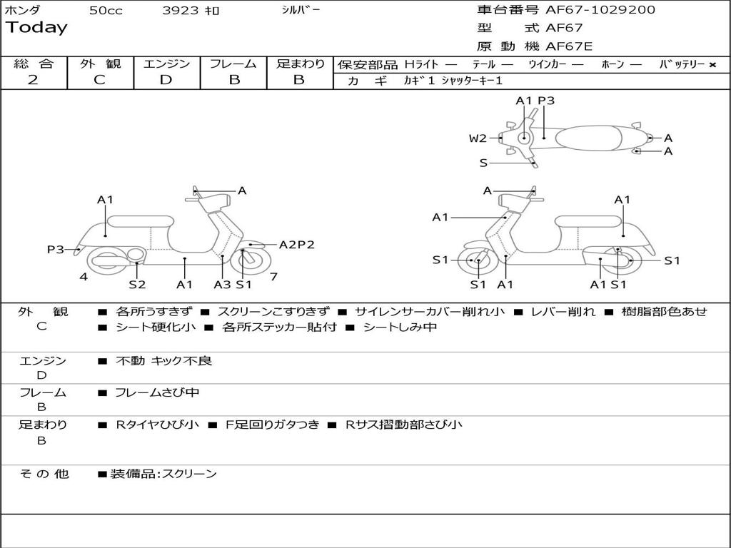| Номер рамы / VIN | AF67-1029200 |