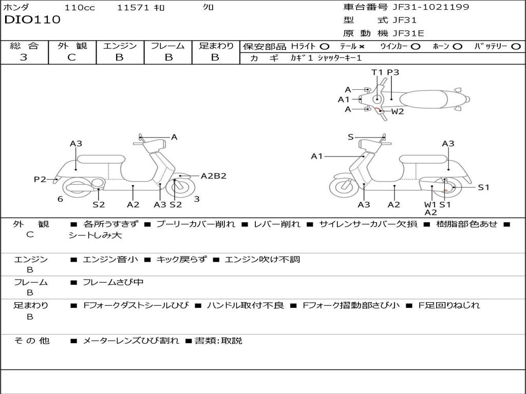 | Номер рамы / VIN | JF31-1021199 |