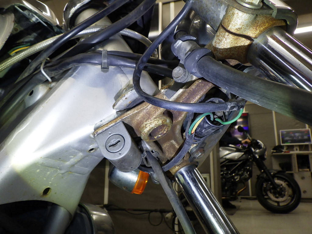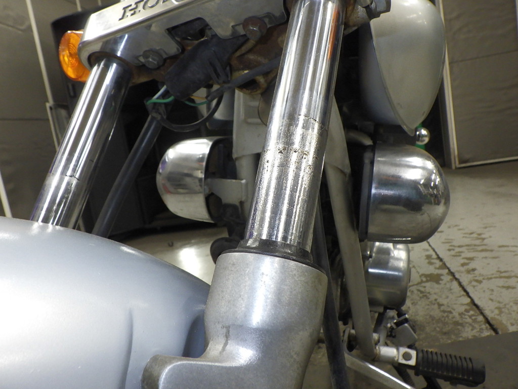 | внешняя часть вилки | следы коррозии <много>, полирован., царапины, потек масла <много> |