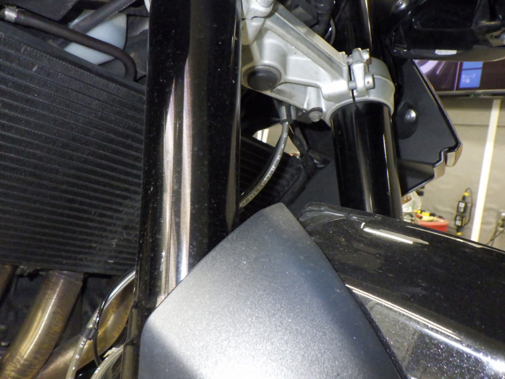 | внешняя часть вилки | царапины <немного>, потек масла <много> |
